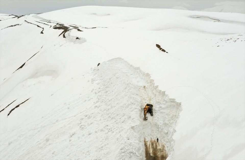 Ekip Şefi Fehim Karakaya da Üçevler grup köy yolunda bir hafta süren çalışma sonucu yolu açtıklarını belirterek, "Bu bölgede tipiden dolayı 20 metreye yakın kar var.