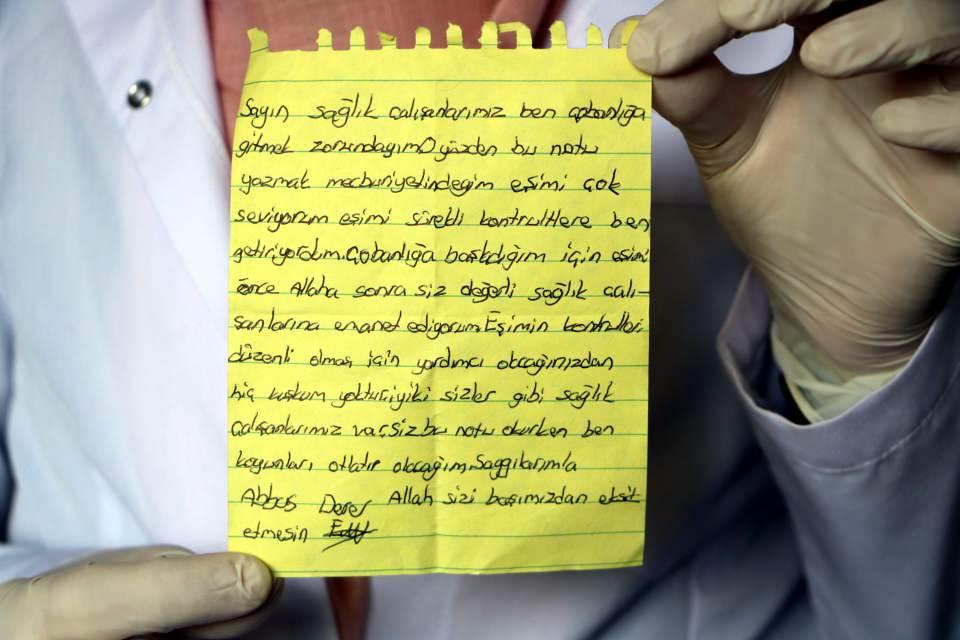 Derer, okuma yazması olmayan eşiyle ilgilenmesi için ebe ve sağlık çalışanlarına not yazdı. Nurcan Derer, aile sağlık merkezine geldiğinde eşinin yazdığı notu sağlık çalışanlarına verdi. Notu görünce duygulanan sağlık çalışanları, hem eşinin kontrollerini yaptı hem de çoban Derer'i çalıştığı belde kırsalında ziyaret etti.