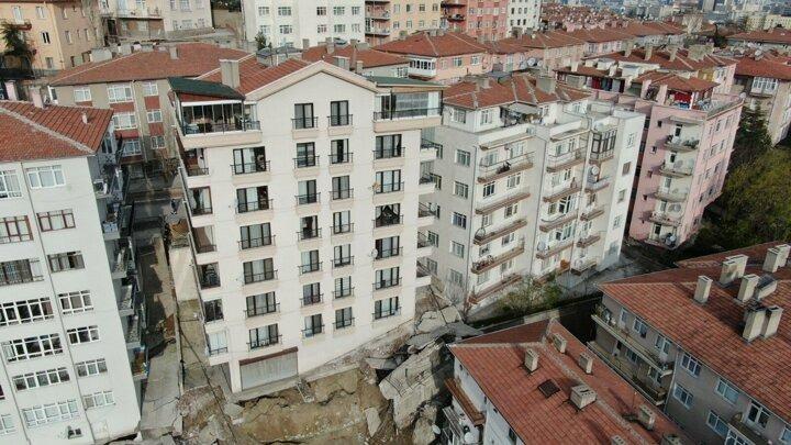 Ankara'da istinat duvarı yıkılan 8 katlı apartman yıkılıyor