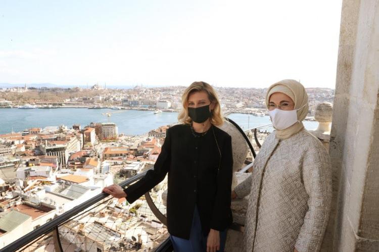 Cumhurbaşkanı Recep Tayyip Erdoğan'ın eşi Emine Erdoğan, Ukrayna Devlet Başkanı Vladimir Zelenskiy'nin eşi Olena Zelenska ile Galata Kulesi'ni ziyaret etti.
