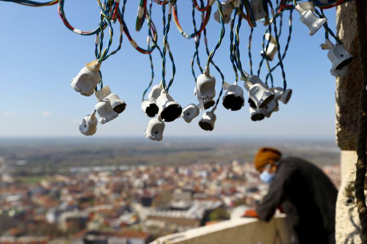 Selimiye Camisi minarelerine ramazan mahyası asıldı
