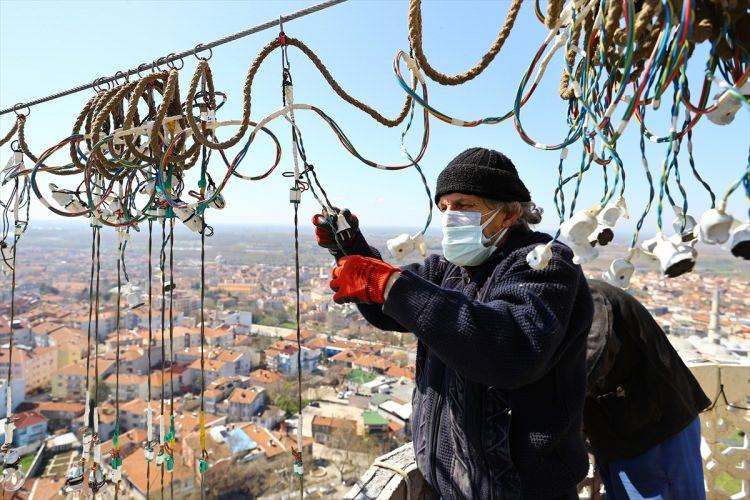 Selimiye Camisi minarelerine ramazan mahyası asıldı
