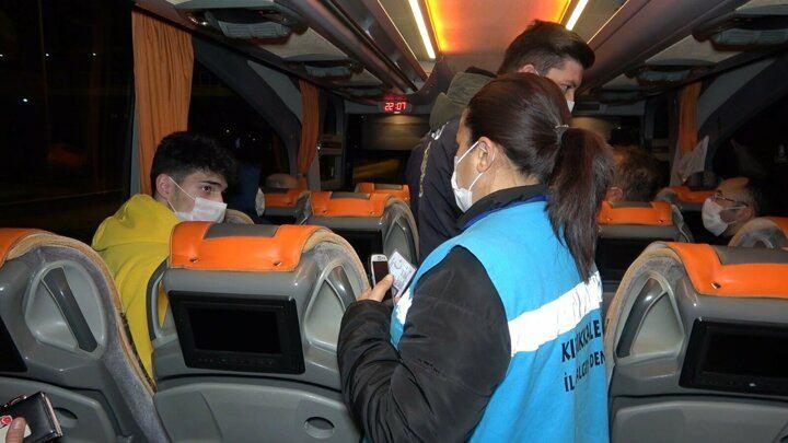 Otobüste seyahat ederken tespit edilen 20 yaş altı bir gence ilk kez kısıtlamayı ihlal ettiği gerekçesiyle uyarı verildi.