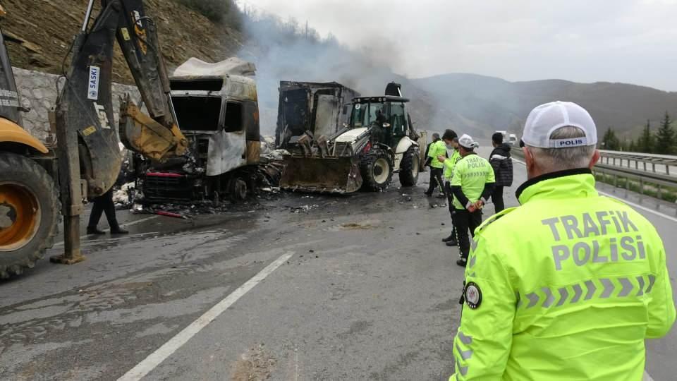 Samsun'da 600 bin liralık pamuk, tırla birlikte alev alev yandı