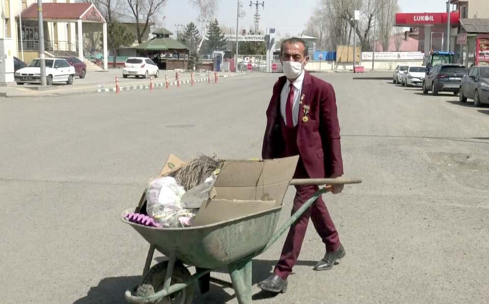 Göle'nin cadde ve sokaklarını 21 yıldır takım elbiseyle temizliyor