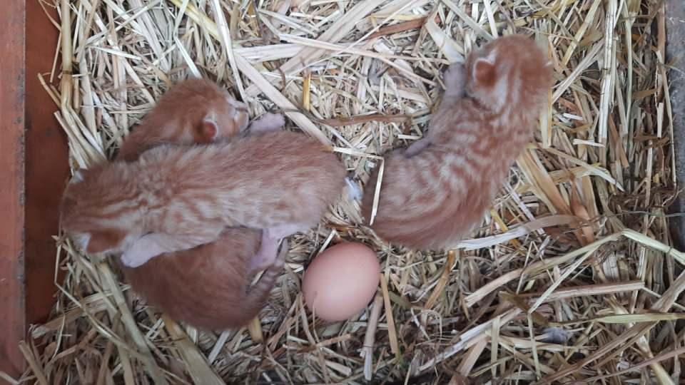 Kedi yavrularını bırakıyor beslenme saatlerini dışarda geçiriyor daha sonra da yavrularını emzirmek için küçük kümese geliyor, yavrularını besliyor.