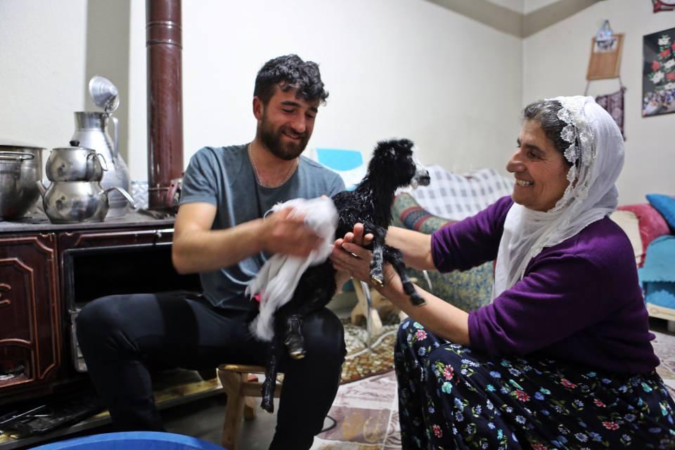 Annesinin reddettiği oğlak 'Dina'ya torunları gibi bakıyorlar