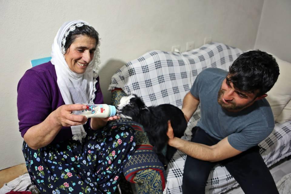 Annesinin reddettiği oğlak 'Dina'ya torunları gibi bakıyorlar