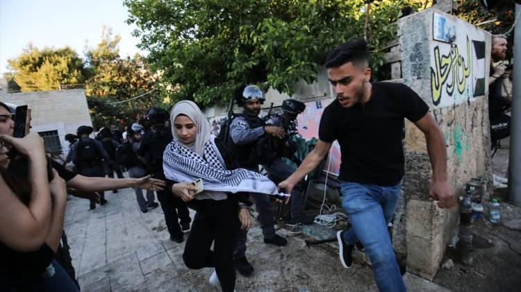 İsrail polisi Filistinli kadının başörtüsünü çıkardı
