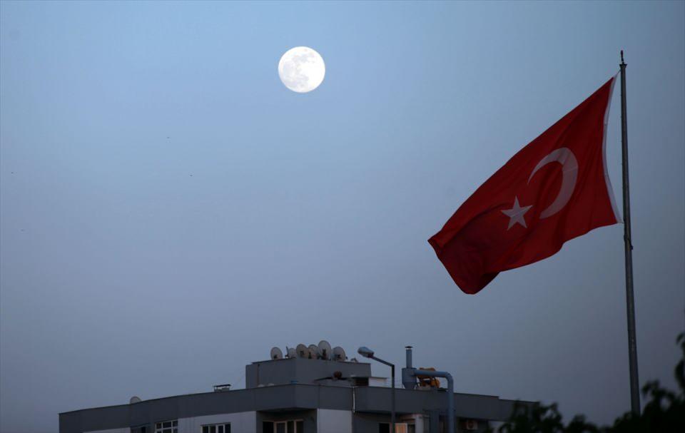 Aydın'da akşam saatlerinde gökyüzünde oluşan dolunay güzel görüntü oluşturdu.