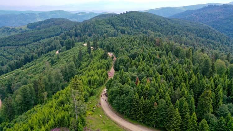 Hayvanların zil ve çan sesleri yaylanın sessizliğini bozarken, köylüler zorlu yolu yüzlerce hayvanla yaya olarak kat edip eşyalarını traktörlerle taşıyor.