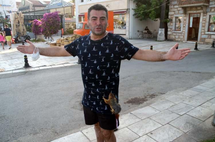 Almanya'dan tatil için Muğla'nın Bodrum ilçesine gelen Yüksel Şeker'in (38) omzunda gezdirdiği baba yadigarı sincap, ilgi odağı oldu.