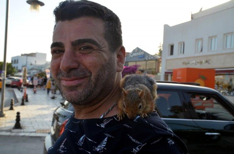 Caddedeki restoranlarda yemek yiyen tatilciler de cep telefonlarıyla sincabı görüntüleyip, sosyal medya hesaplarında paylaştı.