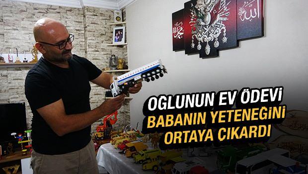 Oğlunun ev ödevi, babanın ahşap yeteneğini ortaya çıkardı
