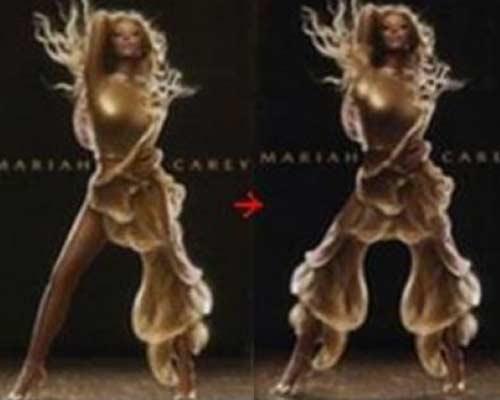 Mariah Carey'nin albüm kapaklarındaki fotoğrafları Suudi Arabistan'da sansüre uğradı. Albümdeki fotoğraflar üzerinde değişiklik yapılarak 'açık' kısımlar kapatıldı. İşte fotoğraflar...