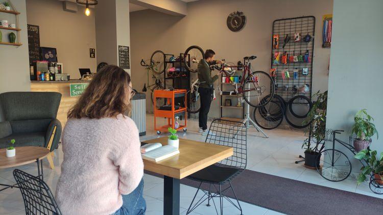 Mühendisliği bırakıp açtığı kafede bir taraftan bisiklet tamir ediyor