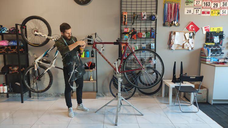 Mühendisliği bırakıp açtığı kafede bir taraftan bisiklet tamir ediyor