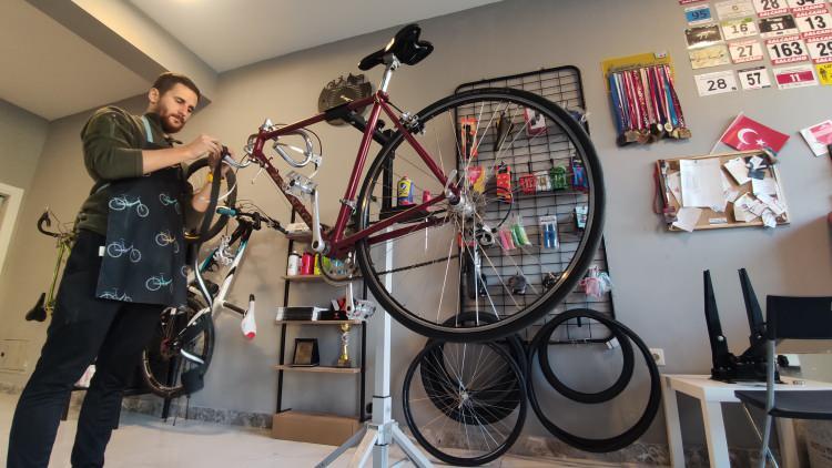 Mühendisliği bırakıp açtığı kafede bir taraftan bisiklet tamir ediyor