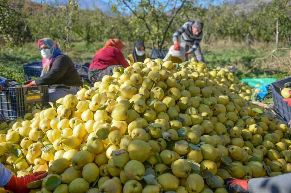 Bir süre önce çiftçiler tarafından toplanmaya başlanan ayvalar, bahçelerde kalitesine göre ayrıştırılarak iç piyasaya ve yurt dışına gönderilmek üzere hazırlanıyor. Yaklaşık 2 bin dönüm arazide ekimi yapılan ayvadan, dönüm başına 11 ton ürün elde ediliyor.