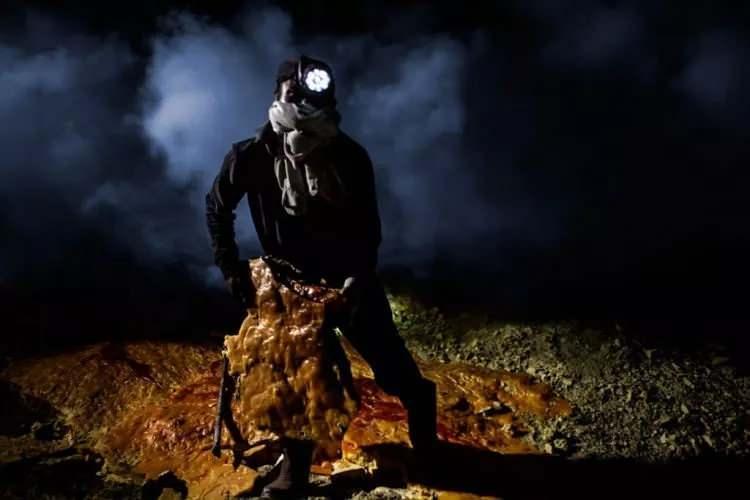 Alpan (27) on yıldır kükürt madeninde çalışıyor. Madencilerin ancak birkaçında gaz maskesi var. Diğerleri gözlerini, boğazlarını ve ciğerlerini yakan, dişlerini eriten gazdan korunmak için faydasız bir çabayla ağızlarını ıslak eşarpla ya da bezle kapatıyor.