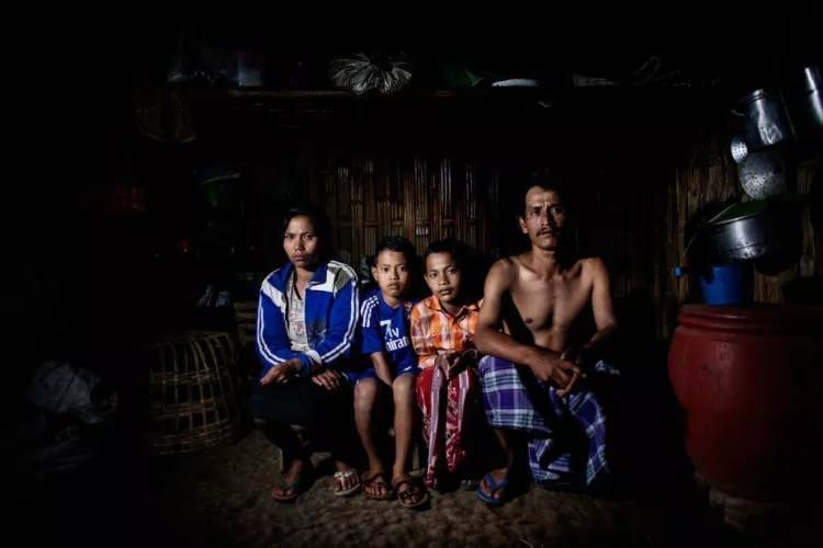 <p>Mat Buand (36) karısı Satini, çocukları Anip ve Aska ile... Buang haftada dört gün, günde iki kez kükürt taşıdığı madende dört yıldır çalışıyor.</p>