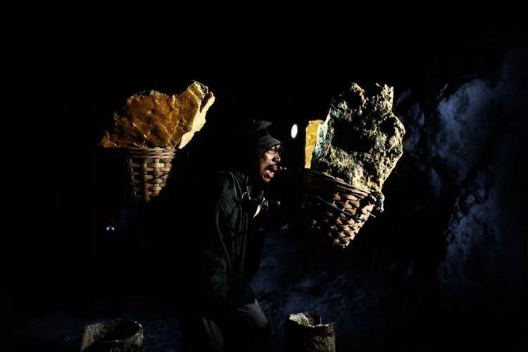 Mat Buand (36) karısı Satini, çocukları Anip ve Aska ile... Buang haftada dört gün, günde iki kez kükürt taşıdığı madende dört yıldır çalışıyor.