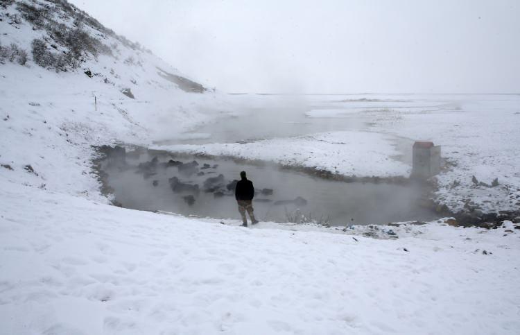 Bitlisli çiftçiler manda ve atlarını dondurucu soğukta kaplıca sularında yıkıyor