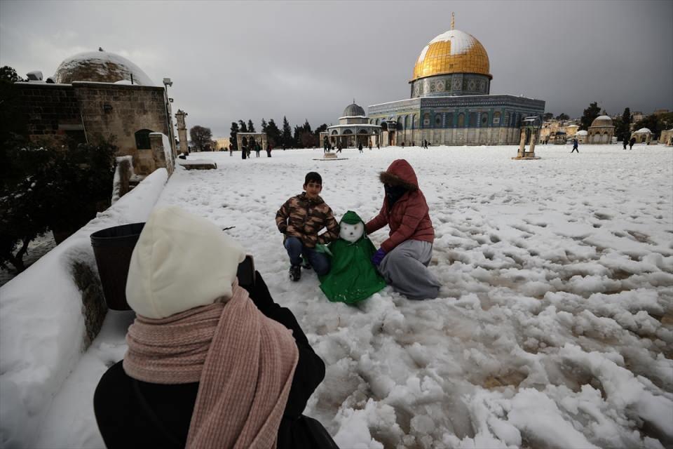 Kudüs'te yağan kar Mescid-i Aksa'da sevince dönüştü