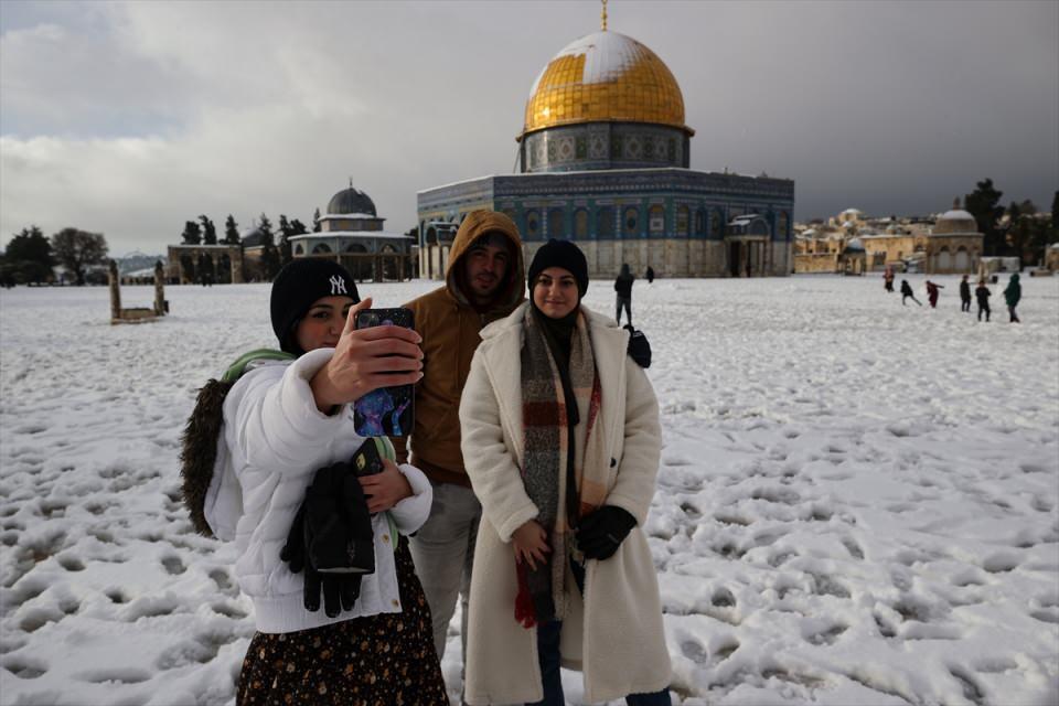 Kudüs'te yağan kar Mescid-i Aksa'da sevince dönüştü