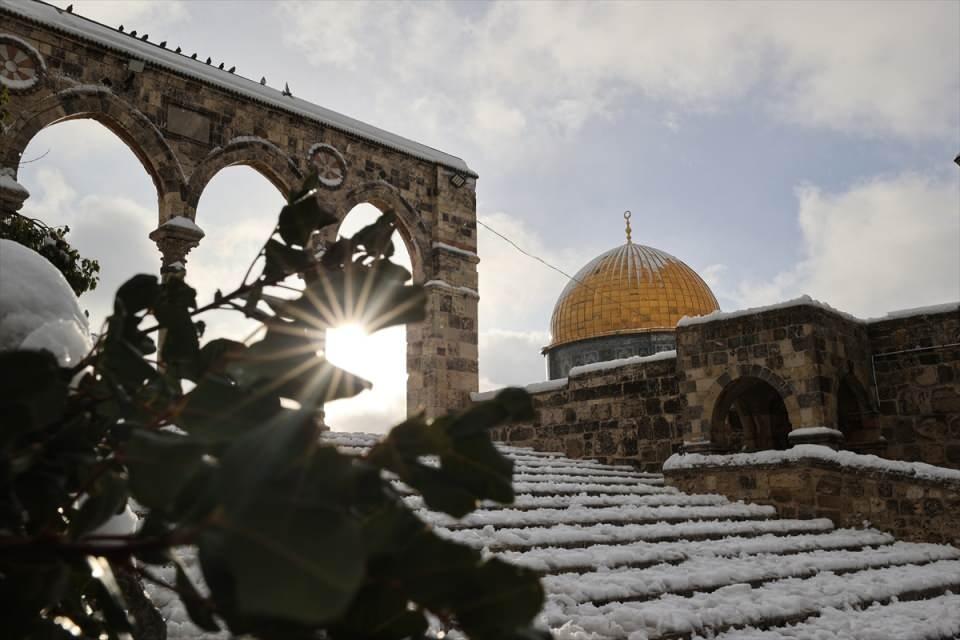Kudüs'te yağan kar Mescid-i Aksa'da sevince dönüştü
