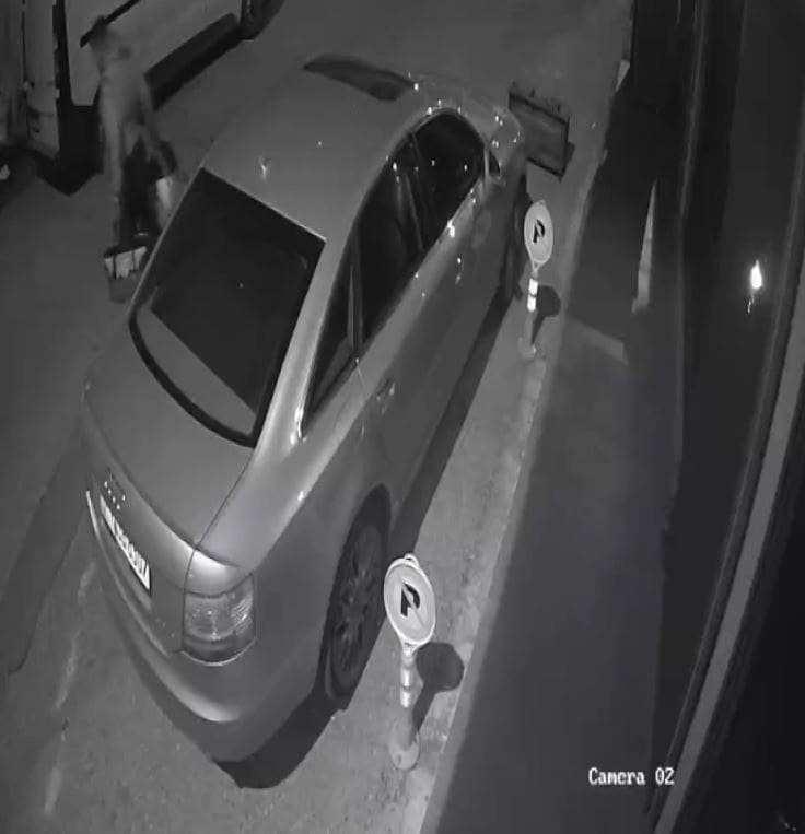 Öte yandan, hırsızlık anı güvenlik kamerasına saniye saniye yansıdı. Görüntülerde kimliği belirsiz üç kişinin otomobilin yanına gelerek kapıyı yoklamaları, ardından bir kişinin tekrar geri gelip kapıyı açarak otomobile girmesi ve bir müddet aracın içerisinde durduktan sonra iki elinde poşetlerle çıkması yer aldı.