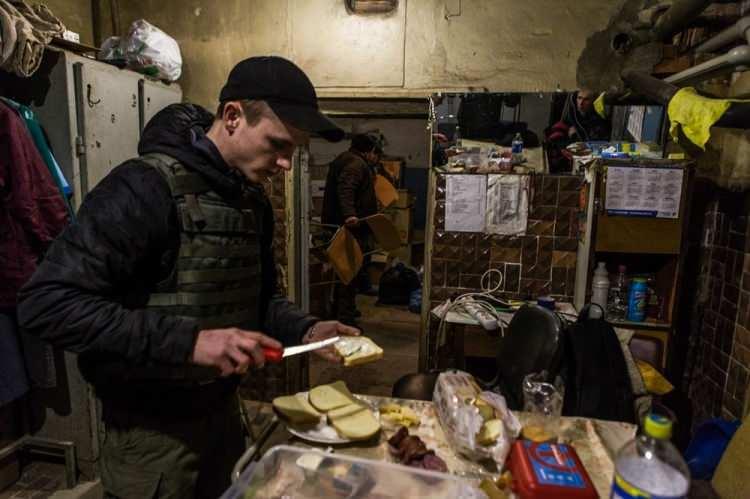 Harkov'da bazı sığınakların belli bölümleri yiyecek ve insani yardım toplamak için ya da yerinden edilmiş muhtaç insanlar için yemek hazırlanırken mutfak olarak kullanılıyor.