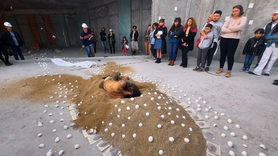 Bu yuvadan uçan kuşların yumurtaları da olabilir ya da bir bireyin kendi yuvasını yaparken simge olarak göstermiştim. Çok uzun zamandır yumurta kabuklarını topluyorum. Bu performansı ilk defa sergiledim” dedi.