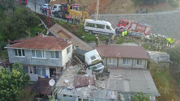 Gecekondunun üzerine düşen tırı bulunduğu yerden kaldırma çalışmaları devam ediyor.