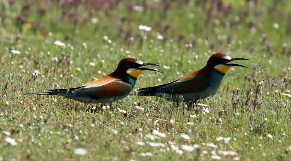 Yuvalarını toprakta açtıkları oyuklara yapan arı kuşları Edirne'de sınır hattında görülüyor