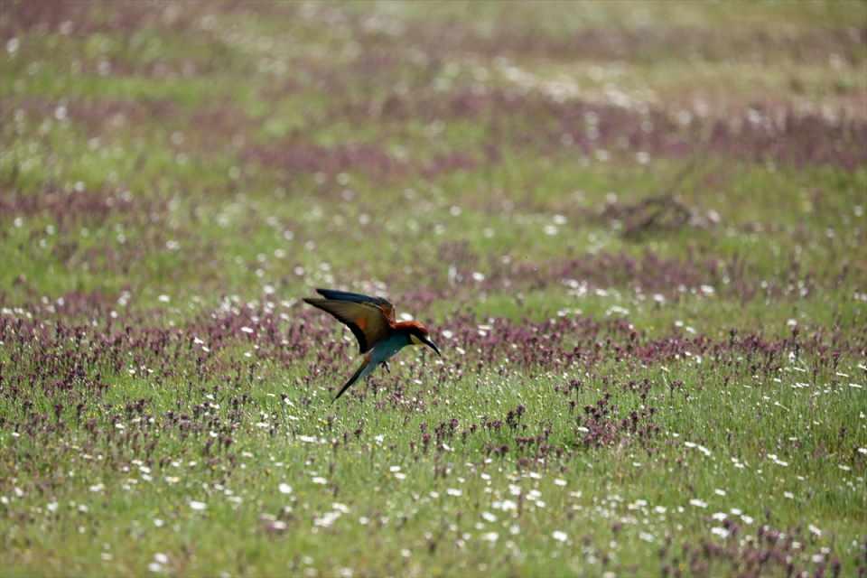 Yuvalarını toprakta açtıkları oyuklara yapan arı kuşları Edirne'de sınır hattında görülüyor