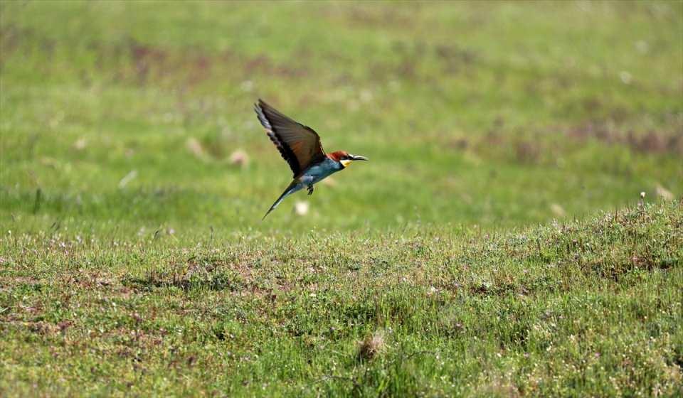 Yuvalarını toprakta açtıkları oyuklara yapan arı kuşları Edirne'de sınır hattında görülüyor