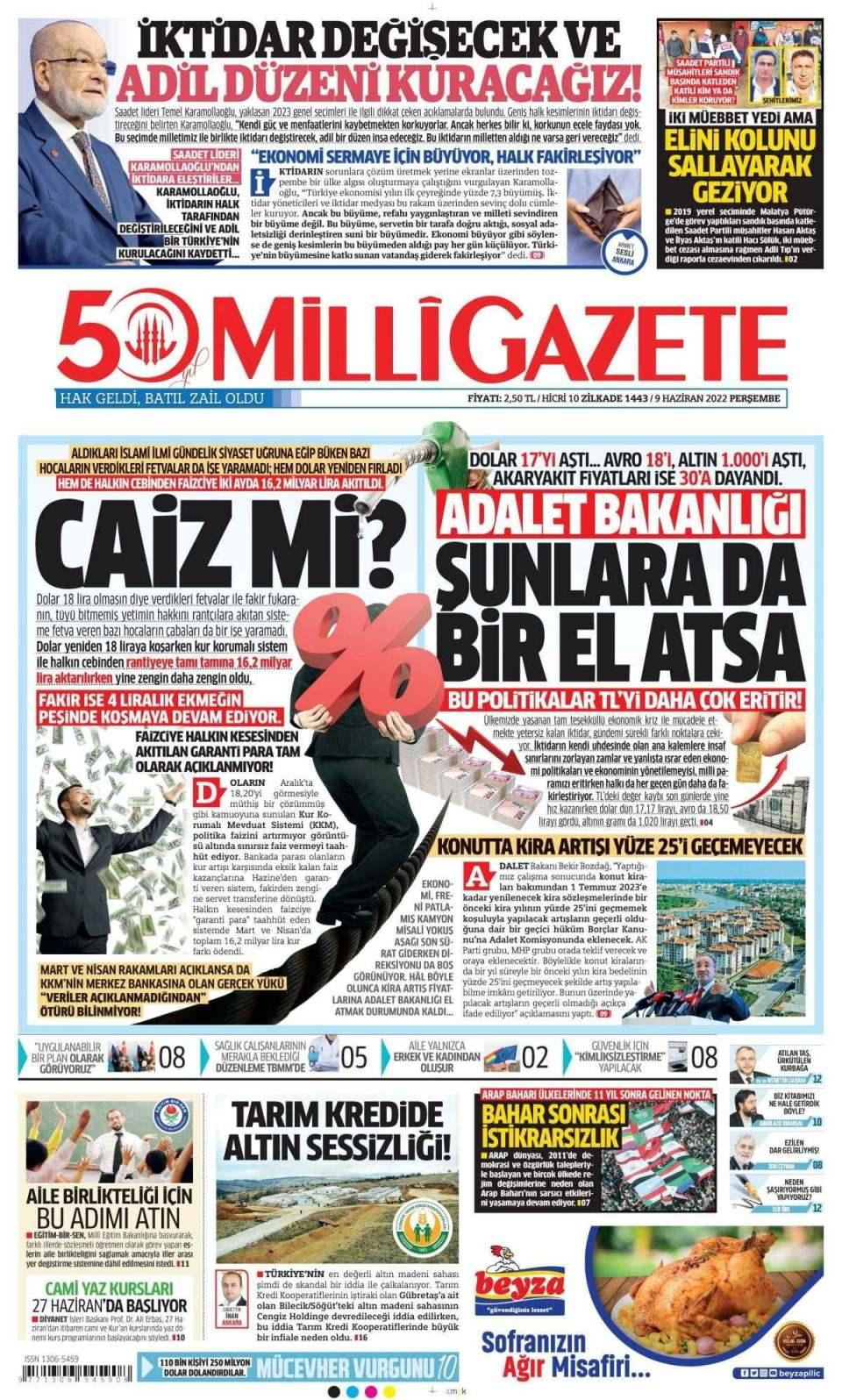 9 Haziran 2022 gazete manşetleri