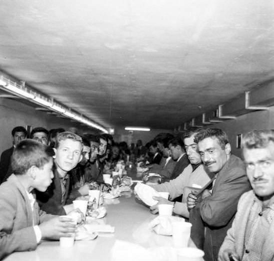Sevkiyat beklerken kumanyalarını yiyen Türkiye göçmeni işçiler (1973-Münih)