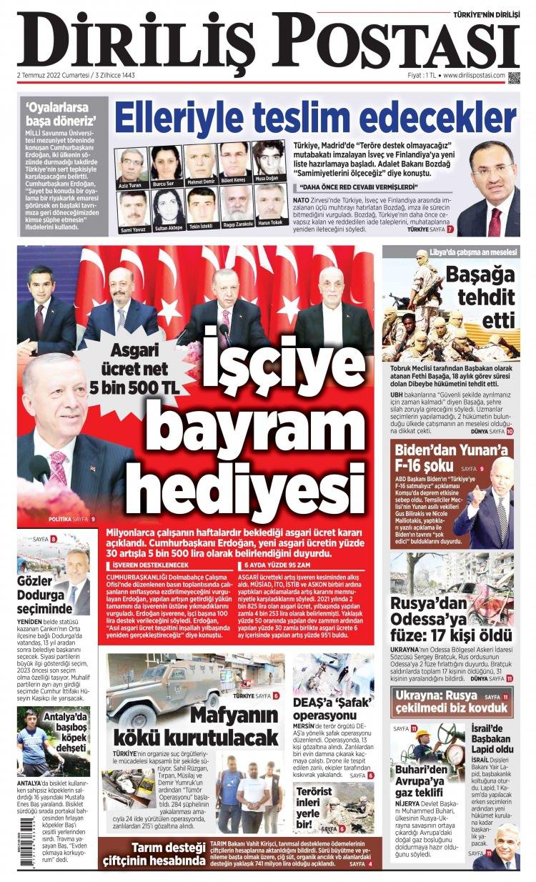 2 Temmuz Cumartesi gazete manşertleri - Asgari ücret zammı manşetlerde! Hangi gazete nasıl gördü?