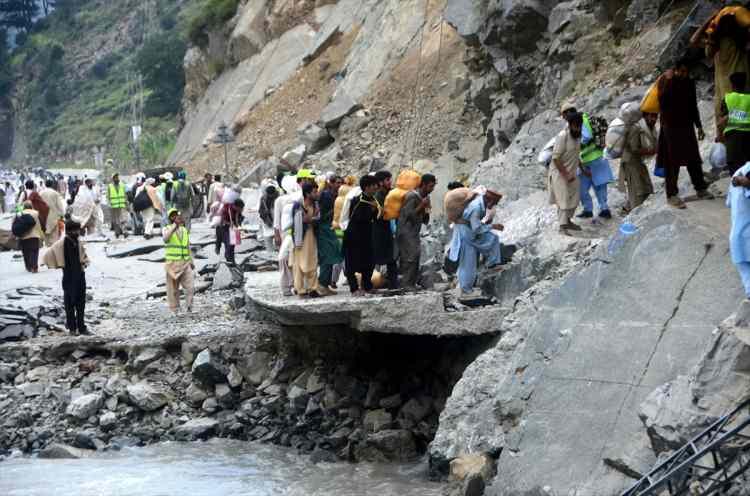Pakistan'da selin yıktığı köprü ve yollar nedeniyle halk erzakı sırtında taşıyor