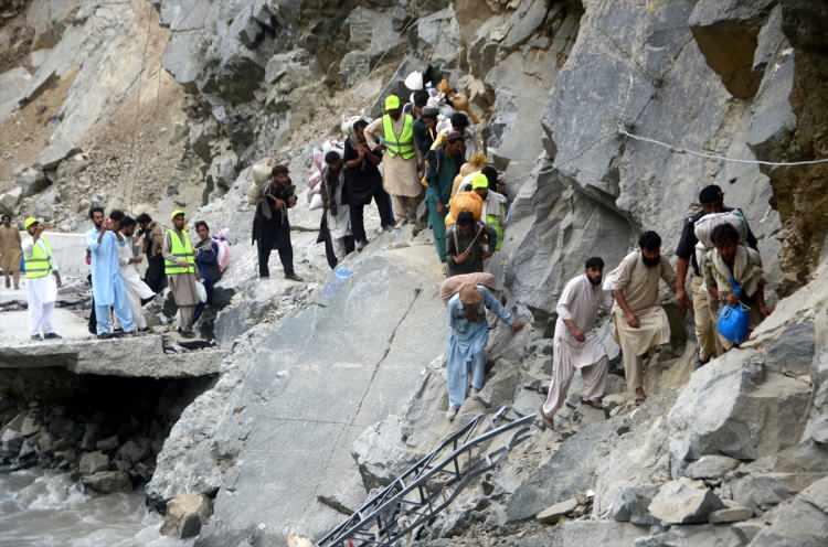 Pakistan'da selin yıktığı köprü ve yollar nedeniyle halk erzakı sırtında taşıyor