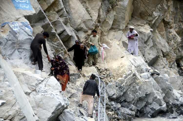 Pakistan'da selin yıktığı köprü ve yollar nedeniyle halk erzakı sırtında taşıyor