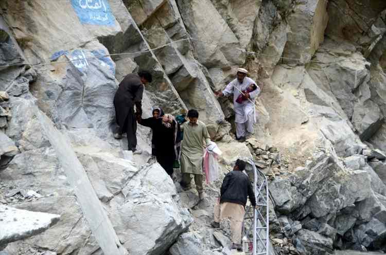 Pakistan'da selin yıktığı köprü ve yollar nedeniyle halk erzakı sırtında taşıyor