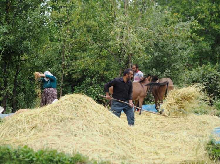 Bitlis’te geleneksel yöntemlerle pirinç hasadı yapılıyor