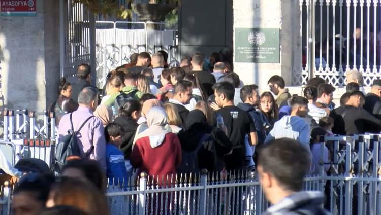 Ayasofya Camii'nde hafta sonu yoğunluğu
