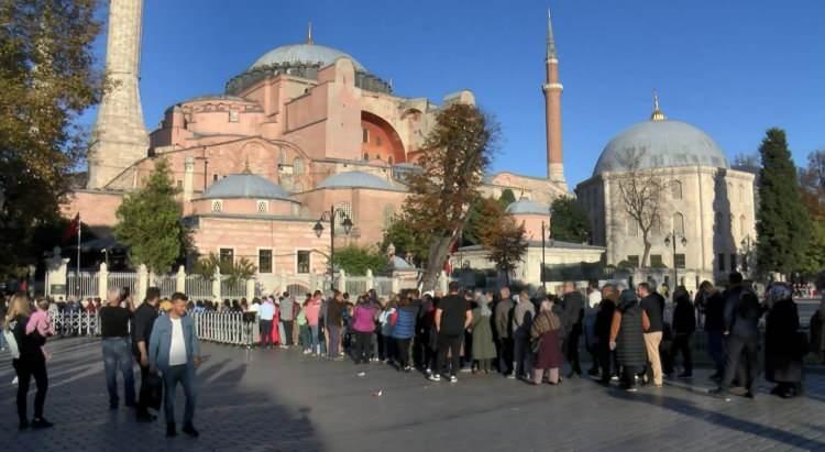 Ayasofya Camii'nde hafta sonu yoğunluğu