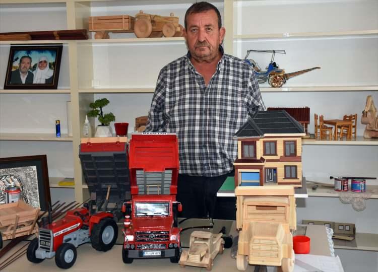 Kamyon ve traktörleri ahşaptan yapıyorum. Ev ve camilerde ahşap ve atık mukavva ile kartonları kullanıyorum." dedi.