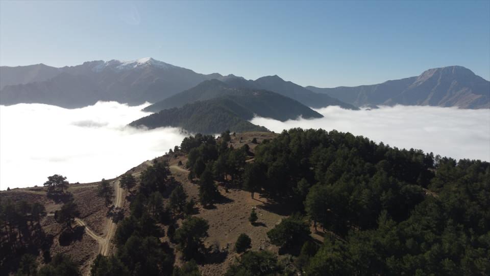 Başkarcı Dağı'nın zirvesi 'bulut deniziyle' kaplandı