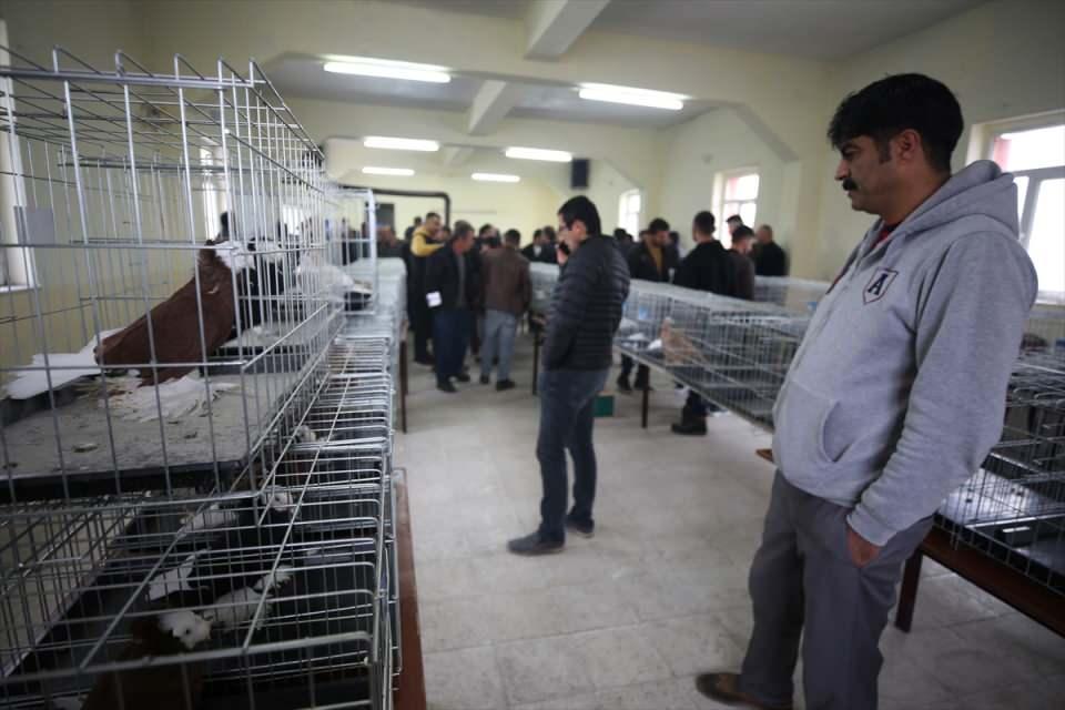 Beldedeki düğün salonunda gerçekleştirilen festivalde, 8 ilden getirilen 120 farklı ırkta güvercin sergilendi.
